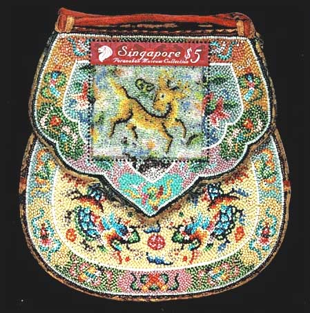 プラナカンミュージアム完成記念 ビーズ製切手小型シート シンガポール発行