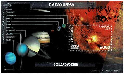 2001年 太陽系と太陽系各惑星 切手小型シート インドネシア発行