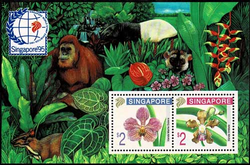国際切手展「シンガポール'95」 蘭の花 切手小型シート シンガポール発行