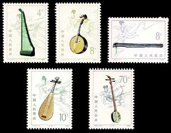 中国民族楽器 弦楽器 切手5種セット 中国発行