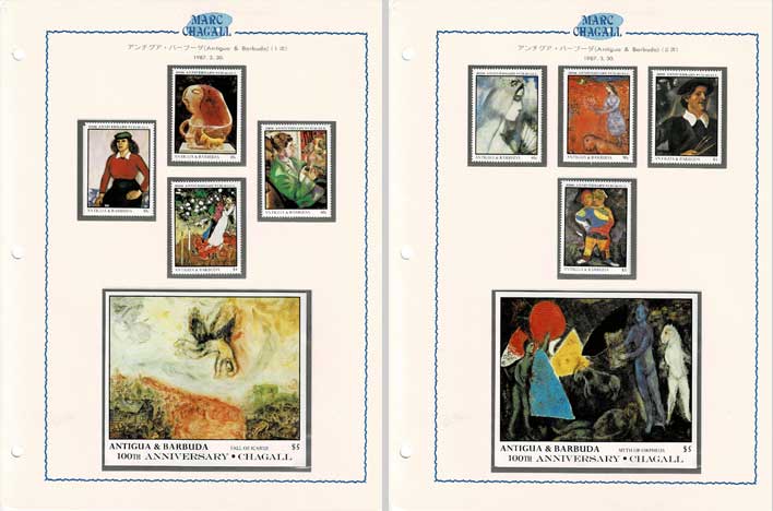 シャガール生誕100年 記念切手10種セット アンティグア・バーブーダ発行