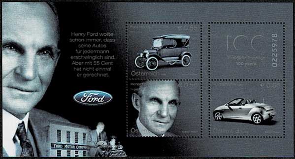 フォード創業100周年記念 切手小型シート オーストリア発行