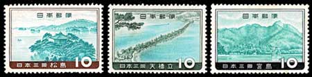 名園シリーズ 水戸偕楽園、岡山後楽園、金沢兼六園 切手3種セット