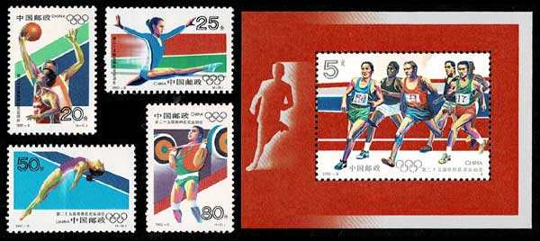中国郵政 1992年バルセロナ・オリンピック切手 単片4種+小型シート