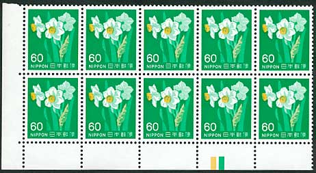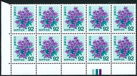 通常切手 スミレ 92円 10面カラーマーク下付き