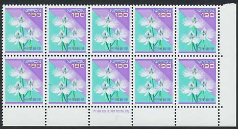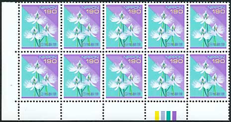 通常切手 日本の自然 サギソウ 190円 10面カラーマーク下付き