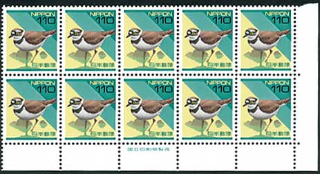 通常切手 日本の自然 コチドリ 110円 10面銘版付き