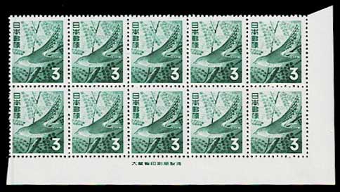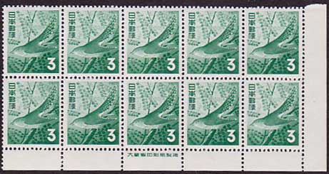 通常切手 第1次円単位 ほととぎす 3円 10枚ブロック銘版付き