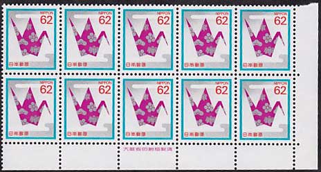 慶弔用切手 折鶴 62円 10枚銘版付き