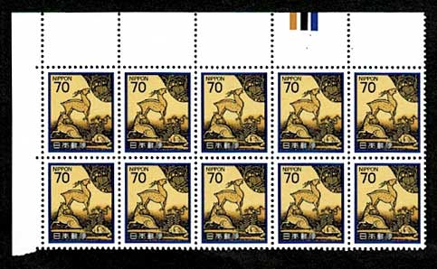 通常切手 春日山蒔絵硯箱 70円 10枚カラーマーク上付き