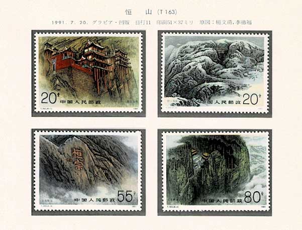 図柄:恒山の古寺、雪景色、神聖な北岳、雲に覆われた歴史的な場所