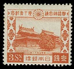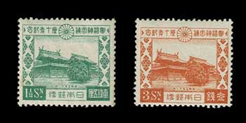 日本切手カタログ番号:記54~55 発行日:昭和5年11月1日(1930年) 額面:発行枚数 1銭5厘 307万枚 3銭 308万枚 状態:未使用・美品 図柄:明治神宮