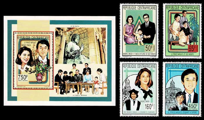 皇太子殿下御成婚記念切手 小型シートと単片4種セット 中央アフリカ共和国発行