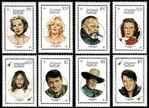 グレース・ケリー、マリリン・モンロー等 映画スター 切手8種セット アンティグア・バーブーダ発行
