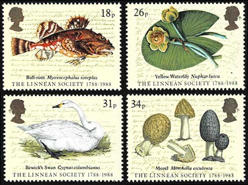 ロンドン・リンネ協会設立200年記念 切手4種セット タトウ付き イギリス発行