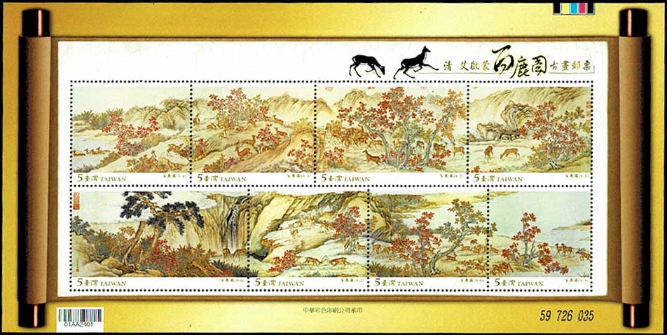 清 百鹿図 切手シート 台湾発行