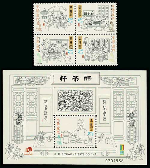 茶芸 切手4種+切手小型シート マカオ発行