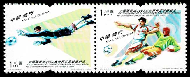 2002年ワールドカップサッカー切手 2種連刷 マカオ発行
