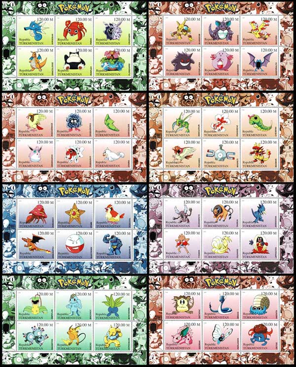 ポケモン 切手小型シート8種セット トルクメニスタン発行