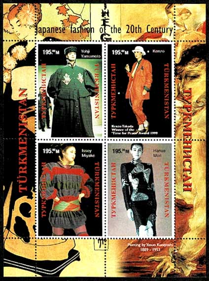 20世紀の日本のファッションデザイナー 切手小型シート トルクメニスタン発行