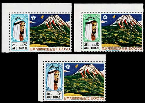1970年大阪万博アブダビ・パビリオン 林武「富士」3種セット アブダビ(アラブ首長国連邦)発行