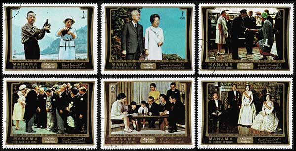 昭和46年 昭和天皇皇后両陛下御訪欧記念切手6種セット オーダーキャンセル マナマ(アラブ首長国連邦)発行