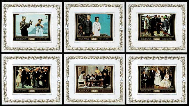 昭和46年 昭和天皇皇后両陛下御訪欧記念切手 小型シート6種セット マナマ(アラブ首長国連邦)発行