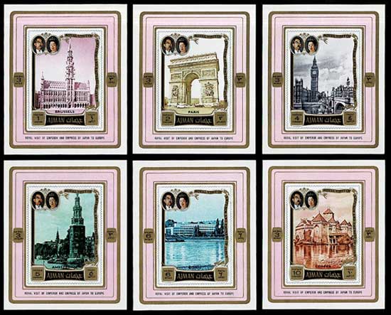 昭和46年 昭和天皇皇后両陛下御訪欧記念切手 小型シート6種セット アジュマーン首長国発行(アラブ首長国連邦)