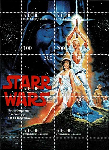クリントンとモニカ・ルインスキー スター・ウォーズパロディイラスト 切手シート アブハジア発行