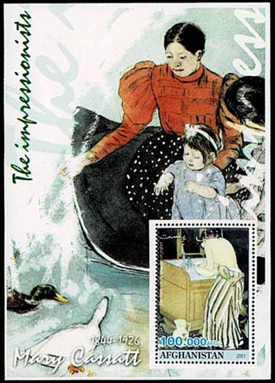 印象派の画家メアリー・カサット 切手小型シート アフガニスタン発行