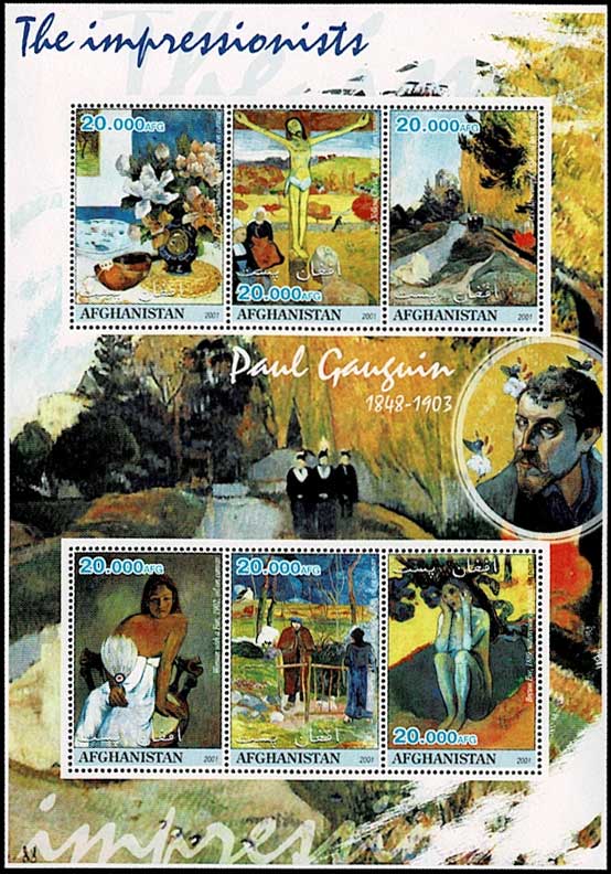 印象派の画家ポール・ゴーギャン 切手小型シート アフガニスタン発行