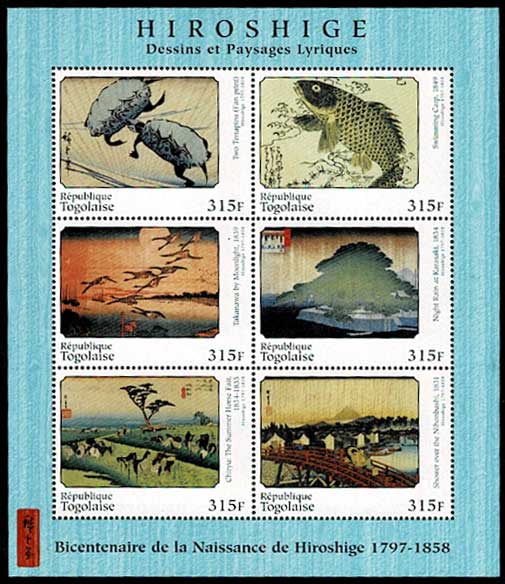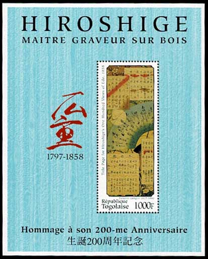 歌川広重生誕200周年記念 「名所江戸百景目録」梅素亭玄魚 切手小型シート トーゴ発行