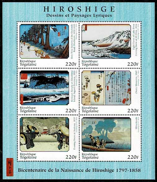 歌川広重生誕200周年記念 「木曽街道六十九次 望月」他 切手小型シート トーゴ発行