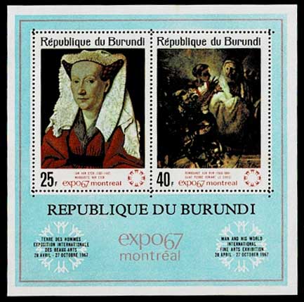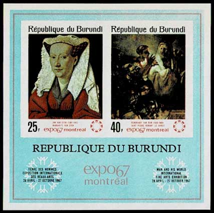 1967年 モントリオール万国博覧会展示絵画2種 切手小型シート(目打ちあり) ブルンジ発行