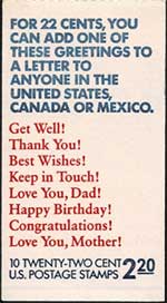 グリーティング切手 22セント10枚綴り切手帳 アメリカ発行