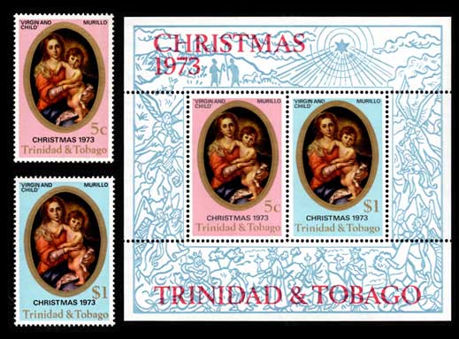 1973年クリスマス切手 切手2種と小型シートのセット トリニダード・トバゴ発行