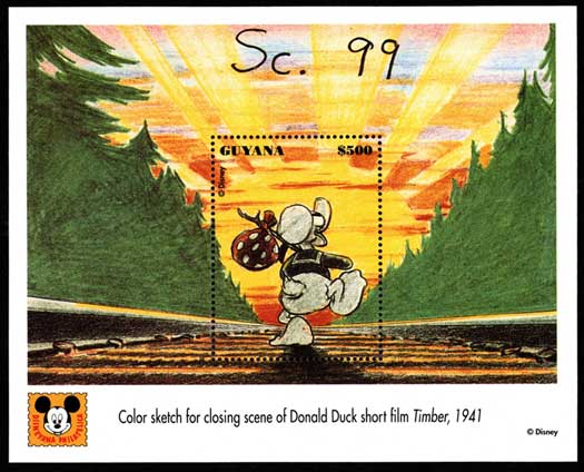 1993年 ディズニー・映画ポスター「ドナルドと山男」 切手小型シート ガイアナ発行