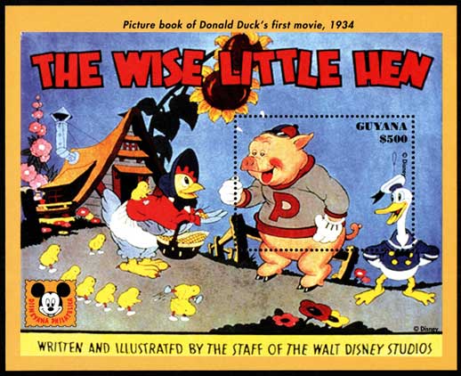 1993年 ディズニー・映画ポスター「かしこいメンドリ」(1934年) 切手小型シート ガイアナ発行
