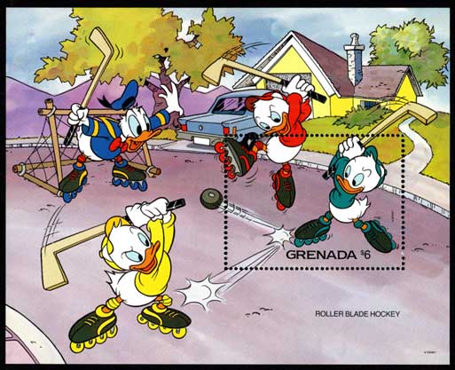 ディズニー ローラーブレードホッケー 切手小型シート グレナダ発行