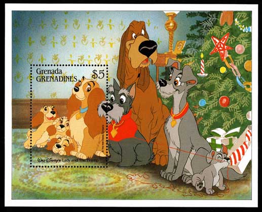 1988年 ディズニー「わんわん物語」切手小型シート グレナダ領グレナディーン諸島発行