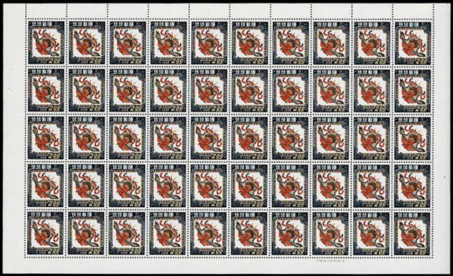 琉球切手 年賀 1958年用 ほうおう 2円シート