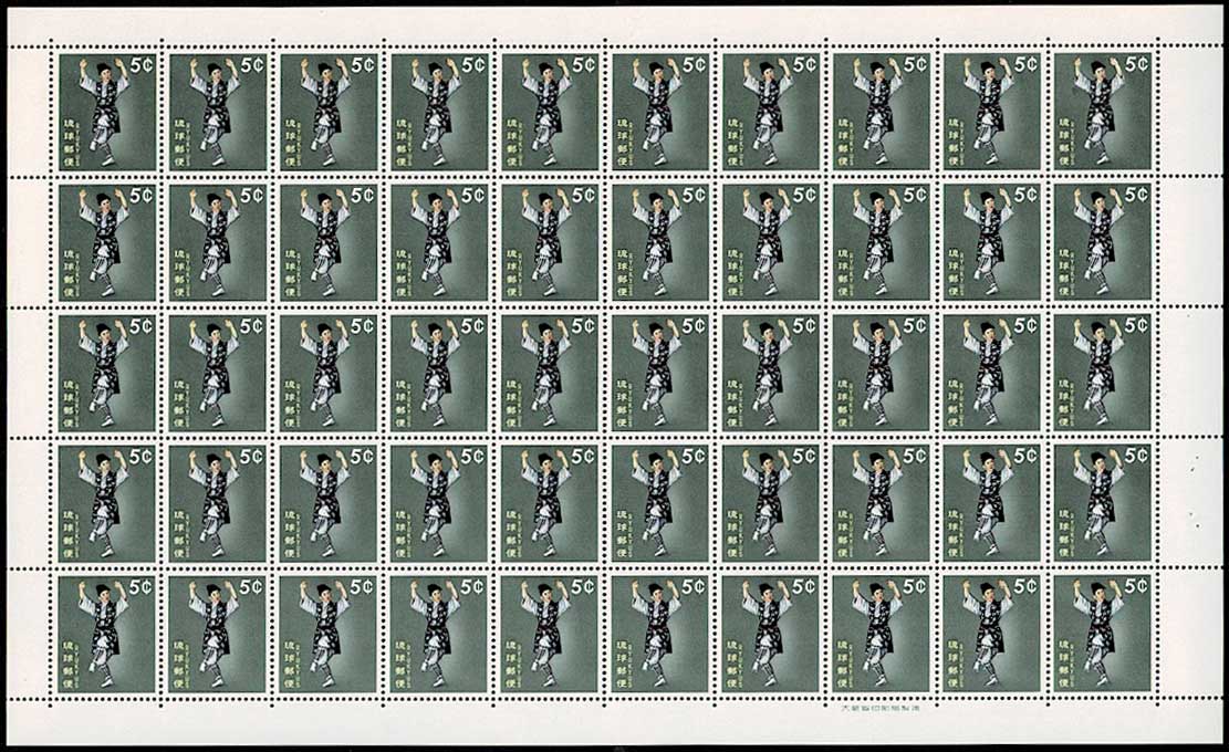 琉球切手 舞踊シリーズ改版 鳩間節 5¢シート