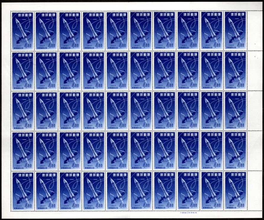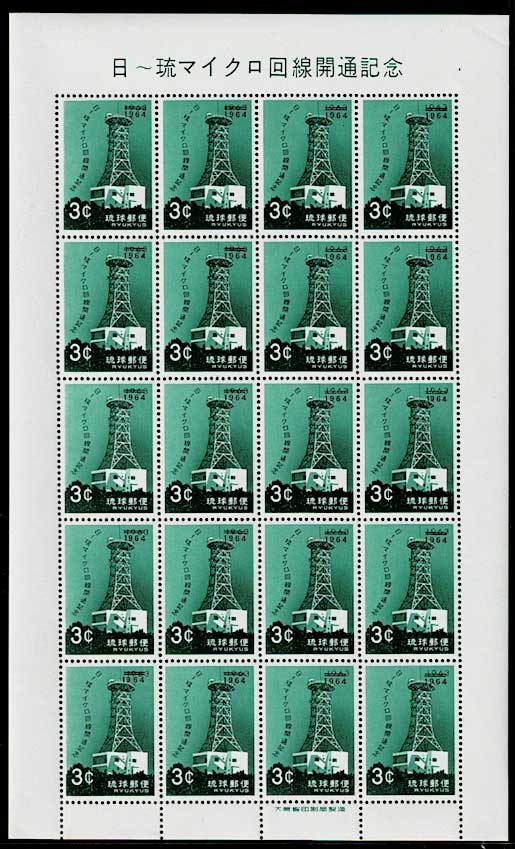 琉球切手 日~琉マイクロ回線開通記念 施設 3¢シート