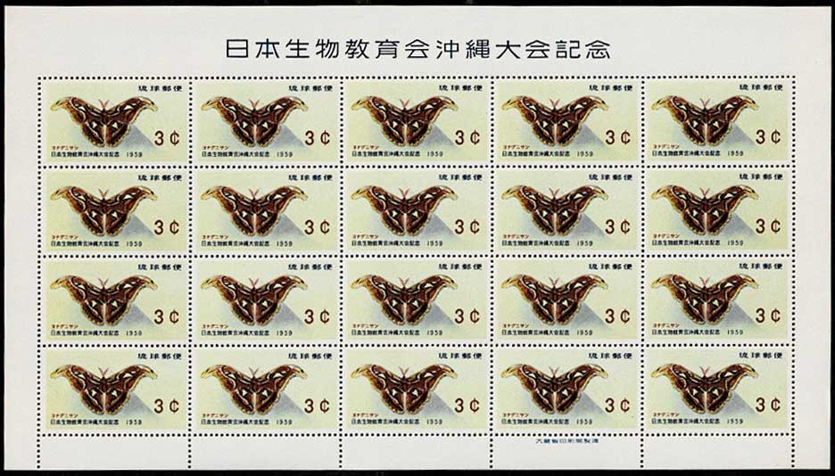 琉球切手 日本生物教育会沖縄大会記念 3¢シート