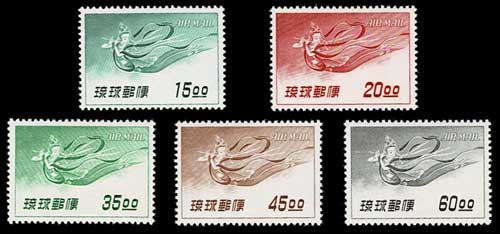 琉球切手 第3次航空切手 天女 全揃い5種セット