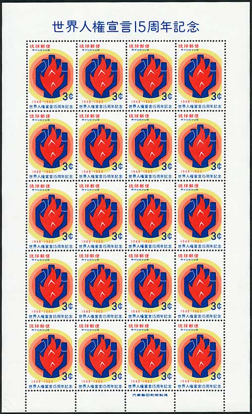 琉球切手 世界人権宣言15周年記念 3¢シート