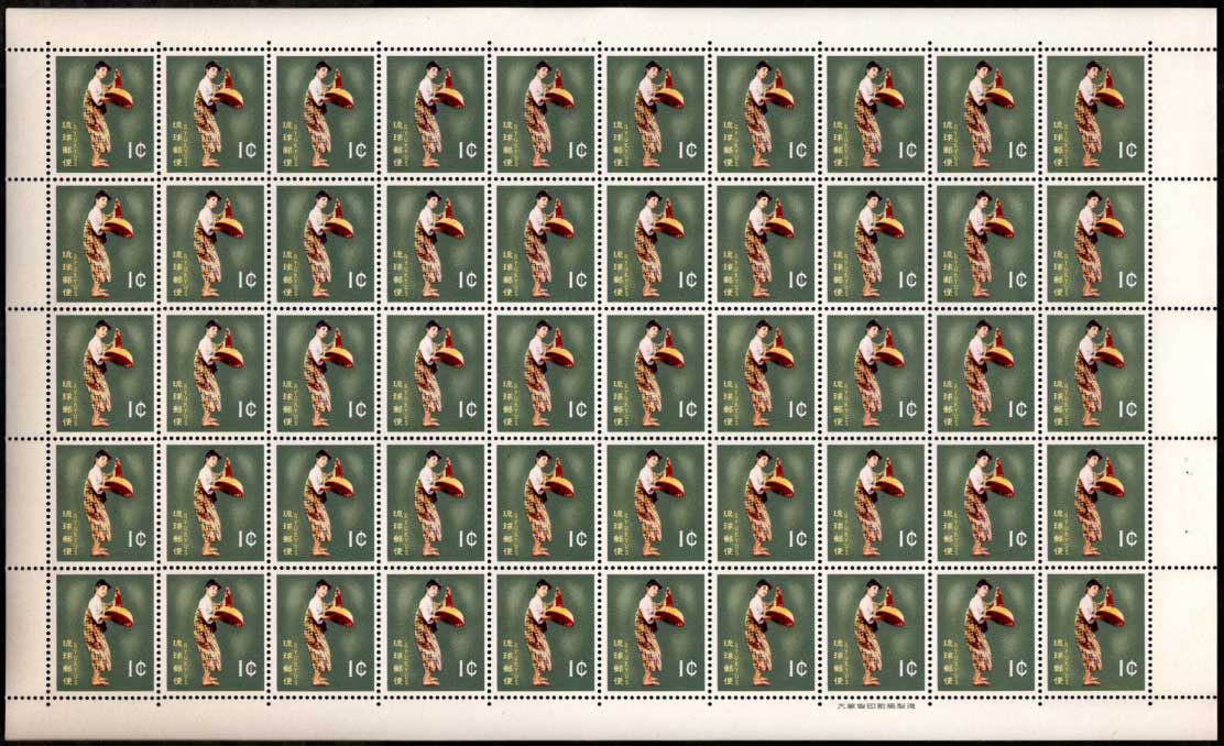 琉球切手 舞踊シリーズ改版 上り口説 50¢シート