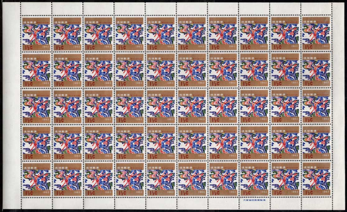 琉球切手 年賀 1963年用 うさぎ 1 1/2¢シート