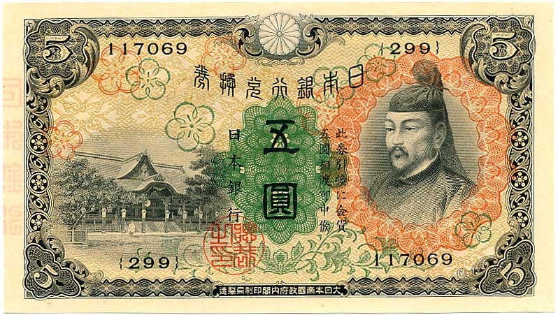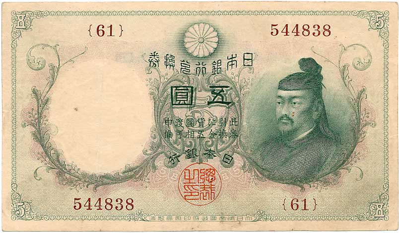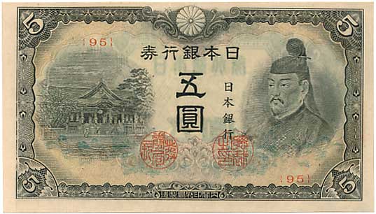 神功皇后5円(改造紙幣5円)美品