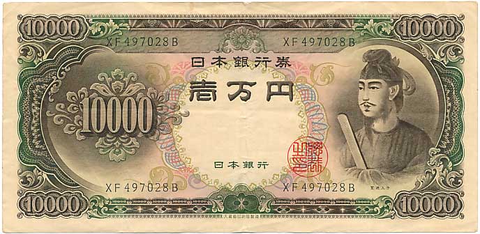 日本銀行券C号10,000円(聖徳太子10,000円)使用済み(並品~美品)